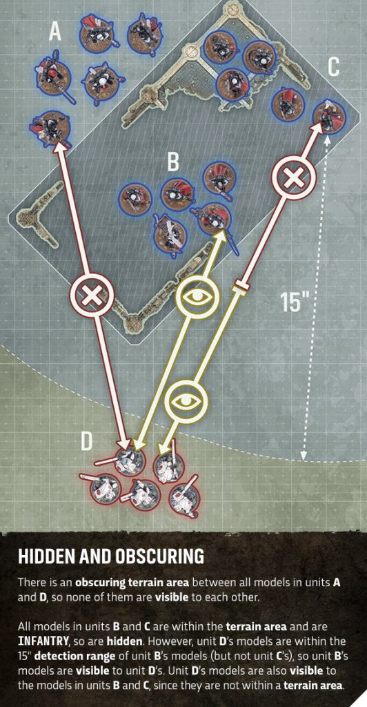 Unifying the terrain rules was one of the thrusts of 10th, and in 11th, that continues with the introduction of Hidden, and a change to cover itself. Terrain is divided into 2D footprints (Terrain Area) & 3D features (Terrain Features). Regarding Terrain Area: Hidden is a new status for Infantry, Beasts, & Swarms, denoted by them being in that area, and not having shot in the current or previous player turn. This leaves the door open for out-of-turn shooting not removing Hidden, but I have a hunch the designers have nipped that in the bud. While Hidden, that unit essentially has Lone Operative 15", introducing the idea of a "Detection Range"—one can already imagine rules or stratagems changing to keyworded effects like this, such as Shroud Protocols from the Skitarii Hunter Cohort altering the target's detection range to 12". Staging squads has never been easier, and this seems primed to assist squishy melee trade pieces in getting up the board, and into your opponent's front lines. Moreover, because many of the terrain pieces you'll be wrestling for control over lack places to park Vehicles/Monsters, they're far more likely to be won by infantry. That being said, OC isn't changing much beyond the shape of the objectives themselves, so it's more about holding them from within protected walls, than re-learning how to hold them.7. Cover & Obscuring Change...Slightly