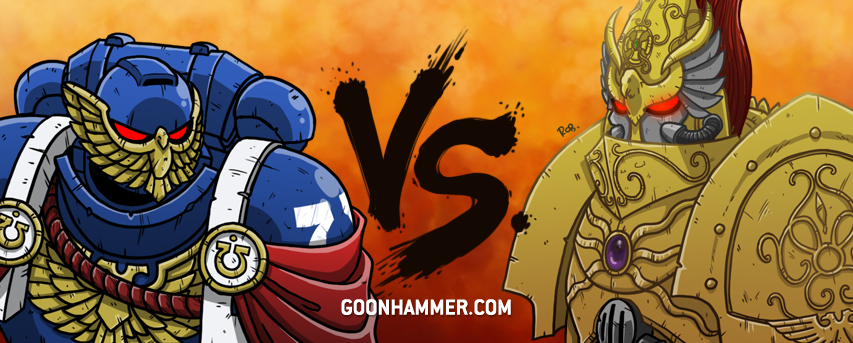 We had one our own Goonhammer writers in this matchup, so they've been corralled into writing about it. Take us away, Jeremy.Curie: Jeremy (or Curie to those who know me on-line) here bringing the report from the front lines! Space Marines versus Adeptus Custodes, both armies that have been putting up solid results in the current meta.