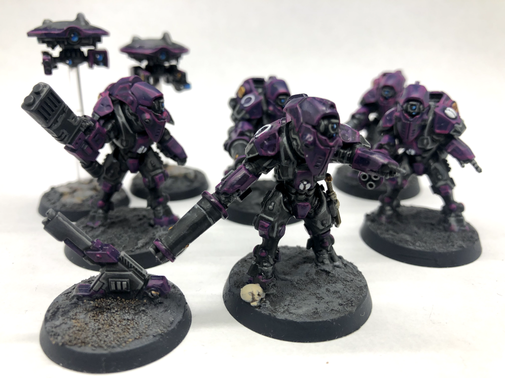 So aside from the unit size and cost, what changed? Well, the Battlefield Support System is gone, which gave the unit the ability to fall back and shoot with one model in the 3-model unit or two in the 6. That's a big downside, since it means no more falling back and spotting, though the addition of the pulse pistol to the Shas'ui means you can spot while in combat, at least.