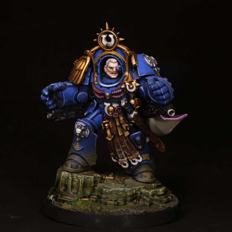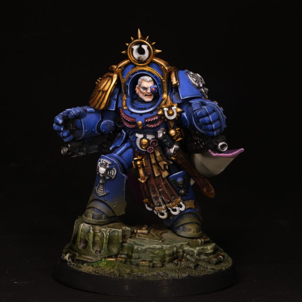 I'm wondering if there was some difficulty in manufacturing, as the mold lines here are the worst I've seen from a GW kit in over a decade, and I know I wasn't the only person who had that issue. The model just doesn't quite fit together right, and the cloak on mine ended up being uneven as a result. It's a shame because the pose and detail are genuinely lovely once you clean them up. Both of his faces are expressive and convincingly sell him as being an absolute heel, though I used a more patrician head from the Ultramarines upgrade sprue as I liked the idea of him being more stately and measured with age. The banding of his armor will prove a bit of a challenge for painters, as will his back banner. I can see a case for leaving him off his base to better reach under his cloak, but as a glutton for punishment, I glued mine in place. I do think he's a genuinely appealing model, but prepare yourself for a mighty fiddly time putting him together.