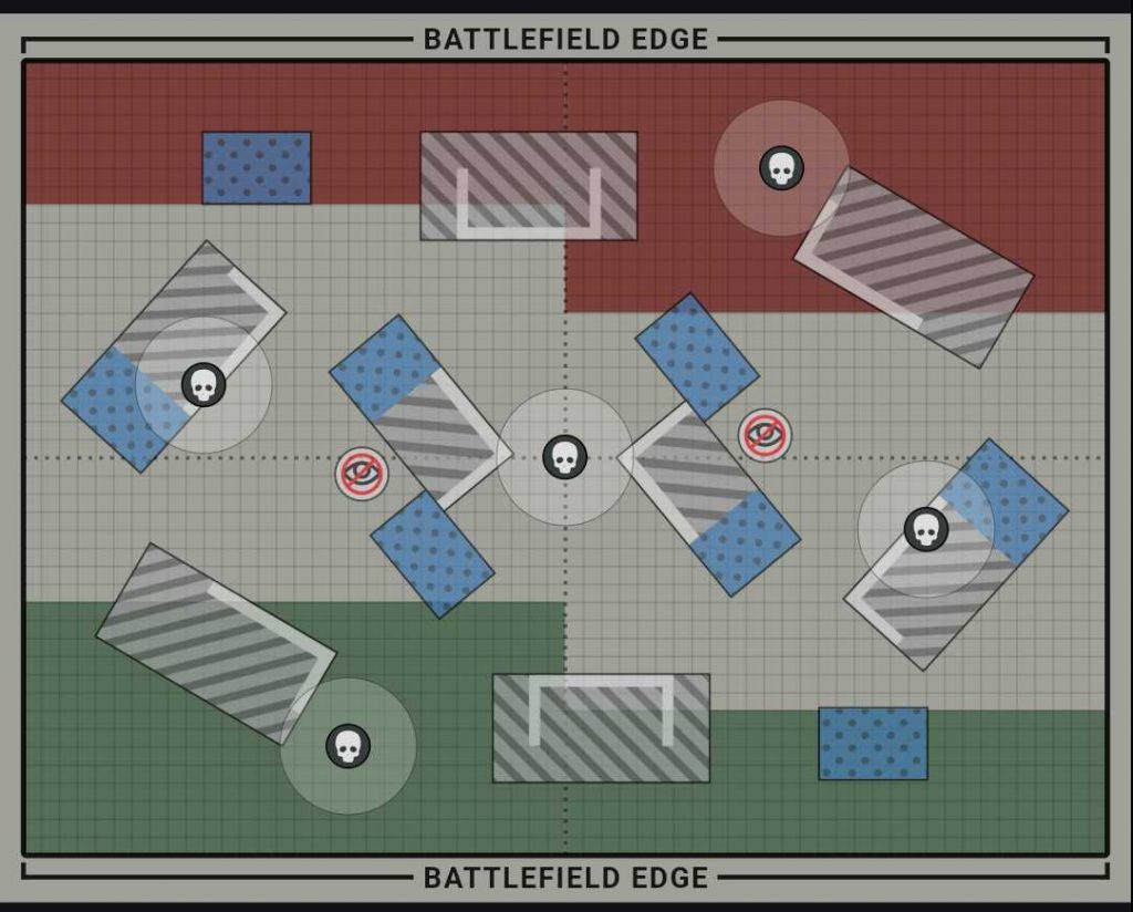 Layout 3 isn't my favorite layout. It's difficult to set up and pretty open. If you're on Search and Destroy it's a little more balanced; otherwise, it's going to be a huge benefit for shooting-oriented armies that can outrange opponents and use the easy movement to position tanks to be able to score easy kills. The lack of safer deployment spots will combine with this to make it much more generous to the player going first, so you'll want to try and avoid getting caught in bad positions early unless it's part of a plan to bait an opponent out.Have any questions or feedback? Drop us a note in the comments below or email us at contact@goonhammer.com. Want articles like this linked in your inbox every Monday morning? Sign up for our newsletter. And don’t forget that you can support us on Patreon for backer rewards like early video content, Administratum access, an ad-free experience on our website and more