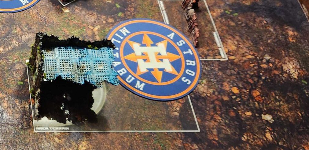 B. Your second home corner ruin. There's a weird double diagonal ruin on Layout 4, part of a trio that makes up your home shield when it comes to line of sight. The ruin on B is L-shaped and acts as a solid secondary piece of cover for units moving into staging positions and for hiding vehicles that want to stay out of line of sight.