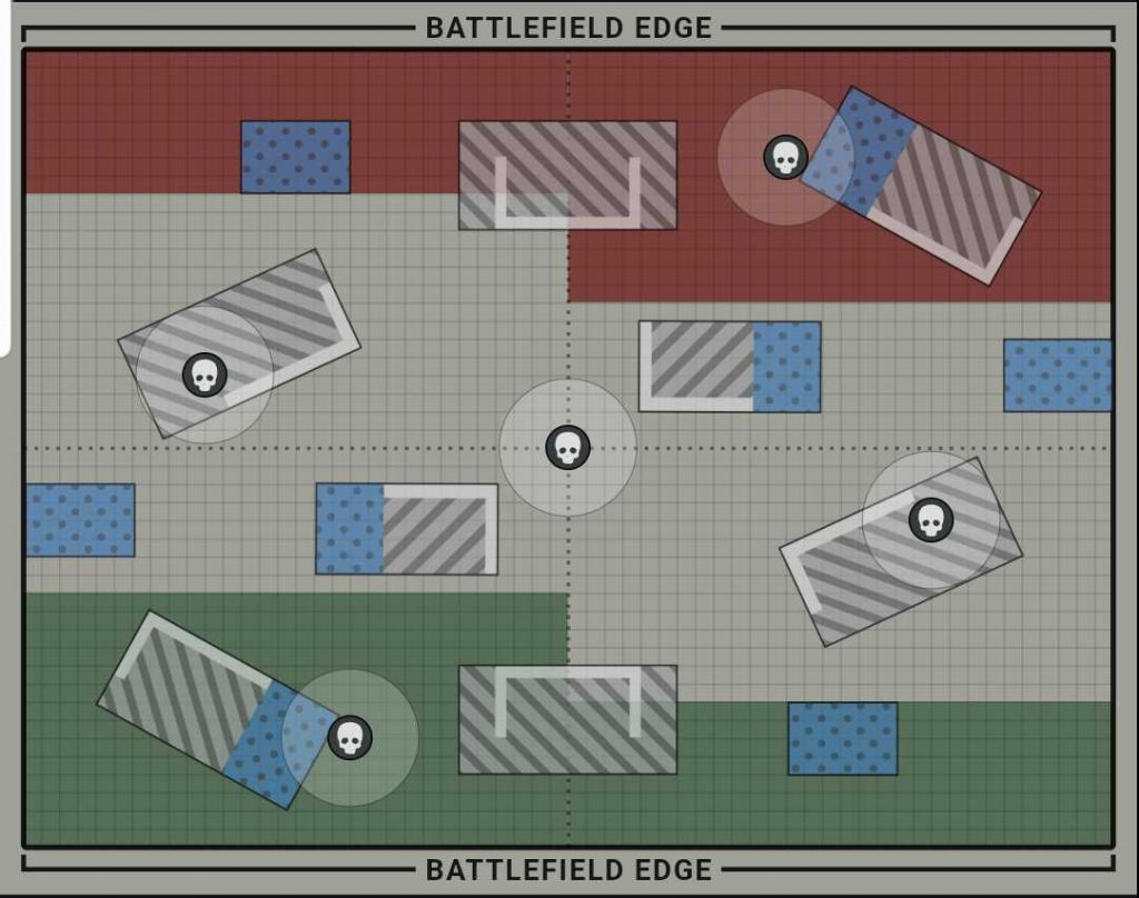 Similarly, your "home" objective isn't well protected, either so you'll really want to have a unit which can sticky that objective as soon as possible. Remember that a battle-shocked unit can often sticky an objective if it's under your control, so consider putting a second unit on there if your opponent has indirect fire to kill your unit off that home objective on turn 1.