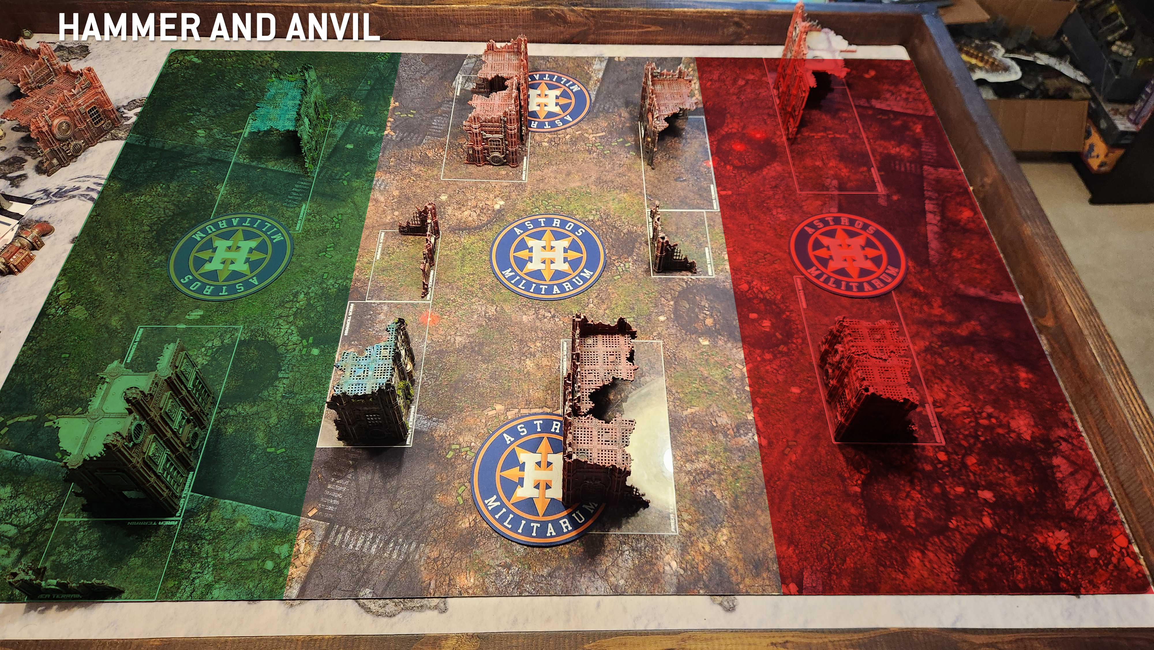 Finally note that on Hammer and Anvil, those three middle objectives are all lined up down the center of the table, and can see each other easily, though they can be held from the other sides of the walls on their respective D. ruins.