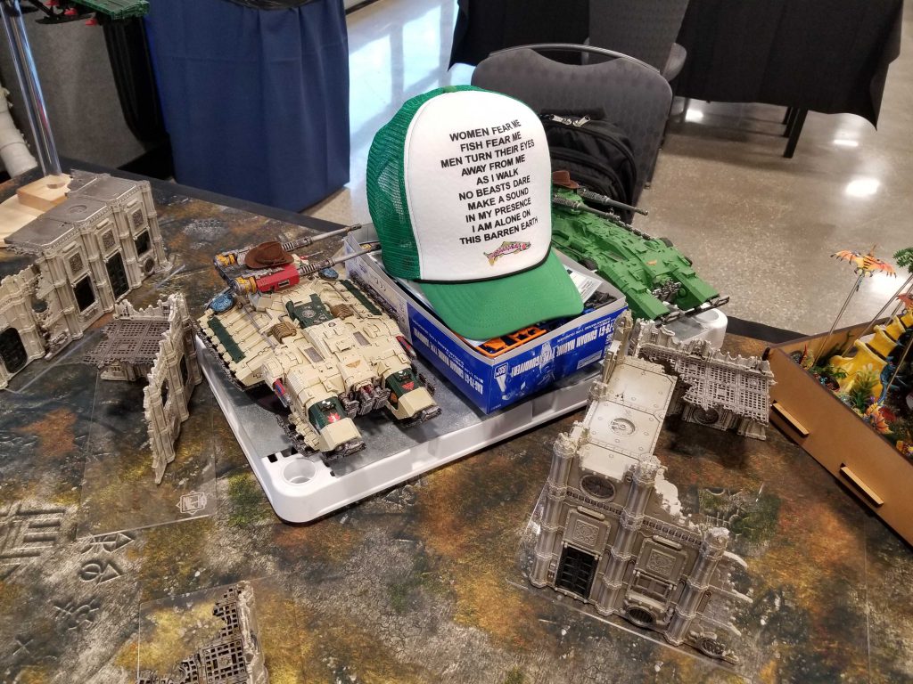 The entire tournament I actually only got tabled twice, once on turn 4 in the stream game, and once in game 5 on turn 3, so I actually ended up playing 37 entire turns of warhammer, with only 7 models lost the entire time (in game 7 I had one tank destroyed). The games were over incredibly quickly, with the slowest game I played running to just past when they called the milestone for finishing round 3. The waiting was actually so bad that I brought a Gundam kit to build between rounds, and ended up finishing building it before the end of the event. With only one less than fantastic game during the event, I had an insanely good time. You could almost feel the annoyance and complaints from the competitive people up at the first dozen or so tables because of a bunch of fancy reasons I adamantly refused to listen to, but everybody I played against in the middle and bottom tables were having an absolute blast, and had nothing but glowing reviews for the event as a whole.