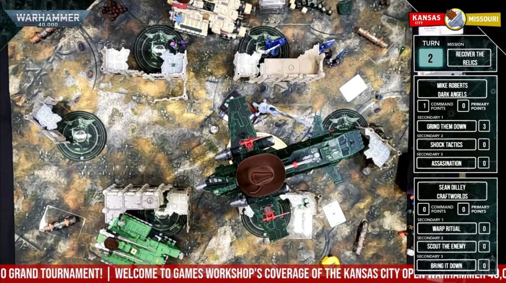 How he kept the tanks alive most of the time. They measure to hull, which is about half an inch up on the low end, and those flat top ruins were exactly 5 inches tall, meaning they could never be in engagement range. Credit: Michael RobertsWhat secondaries did you pick most games? I’m trying to figure out how you score points with this. Grind Them Down and something from the Purge The Enemy category seem like slam dunks, but like...Engage, and park one tank in each quarter?