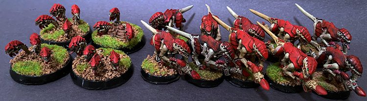 Troops: 30x Termagant Troops: 27x Termagant Troops: 3x Ripper Swarm Troops: 3x Ripper Swarm Troops: 3x Ripper Swarm