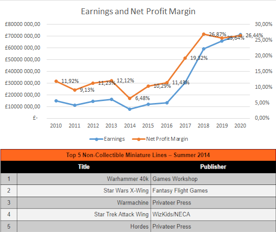 Net profit margins, and ICV2 sale figures. Credit: Seeking Alpha, 2020; ICV2 Internal Correspondence, 2014The problem with selling fantasy at this time was not purely one of IP stagnation as Games Workshop believed itself to be a model company first and foremost. There was neither time nor money to resuscitate Warhammer Fantasy Battles as a game, with the priorities of its game rules coming after the production and sale of the kits themselves. This was said time and time again by then-CEO Tom Kirby, and reinforced a business model that failed to cultivate the large gaming communities we see today. It only makes sense that the solution was thought to be more "exciting" models, spurring the move towards The End Times, a last-ditch effort to right the ship, through the creation of the game's largest ever models at the time.