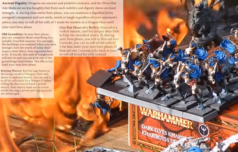 The effects of AoS's botched launch, visualized. Credit: Games Workshop, 2015; Lord Tremendous, 2015On July 6th, many of these were compiled and made well-known through an Escapist article, further cementing Age of Sigmar's unserious nature in the public eye. Contrary to outside eyes, no faction had more than a few of these 'roleplay' rules strewn throughout their Compendiums, but the fact that they existed (and were consistently repeated & reported-on) only magnified the ire surrounding AoS's launch. Following this, several players physically destroyed their Warhammer Fantasy armies, with one Dark Elf player a literal funeral pyre for the game he felt he'd lost, which was subsequently included in further articles. I want to be very clear about this event, as well as with the roleplay rules — the vitriolic reaction associated with these events being publicized led directly to some of the blind resentment that still lingers over the game, but that doesn't make it at all representative of everyone's experience. In the opinion of the author, burning away hundreds of dollars worth of miniatures to prove a point isn't something a well-adjusted adult generally does, nor should it be the single story retold about Age of Sigmar's ill-fated beginnings.