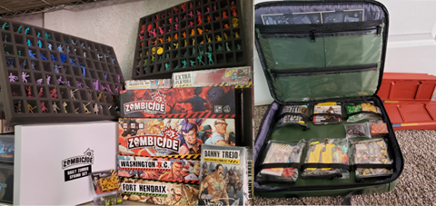 All packed up! Credit: Katherine NeilZombicide is a family favorite at my house. So much so that my partner has collected everything for the First Edition of Zombicide. As the years have gone by, we've added Prison Outbreak, Angry Neighbors, all the extra Survivor characters (except two promo Survivors from the very first Kickstarter, but that's another story), Ultimate Survivors, dice towers, Zombivors, barricades, Zombie Dogz, Zombie Crowz and more. And that's just First Edition! Second Edition—which I ran—isn't as expansive at this point, but it can use any of the 100+ First Edition Survivors and zombie types. I had a lot to consider.