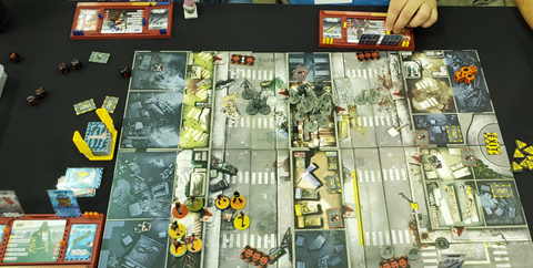 Most of my Gen Con players were pretty new to the game, and there's a lot to explain to a new player. It is a little information overload right at the start, but as the turns go by you tend to fall into a groove. Grab equipment and objectives, fight some zombies, run from others so the other Survivors get a shot at them. Keep everybody close to the same AP level so that the zombie phase doesn’t overwhelm the board. Move zombies towards the Survivors, spawn new zombies, reset round, pass the first player token, and begin again.