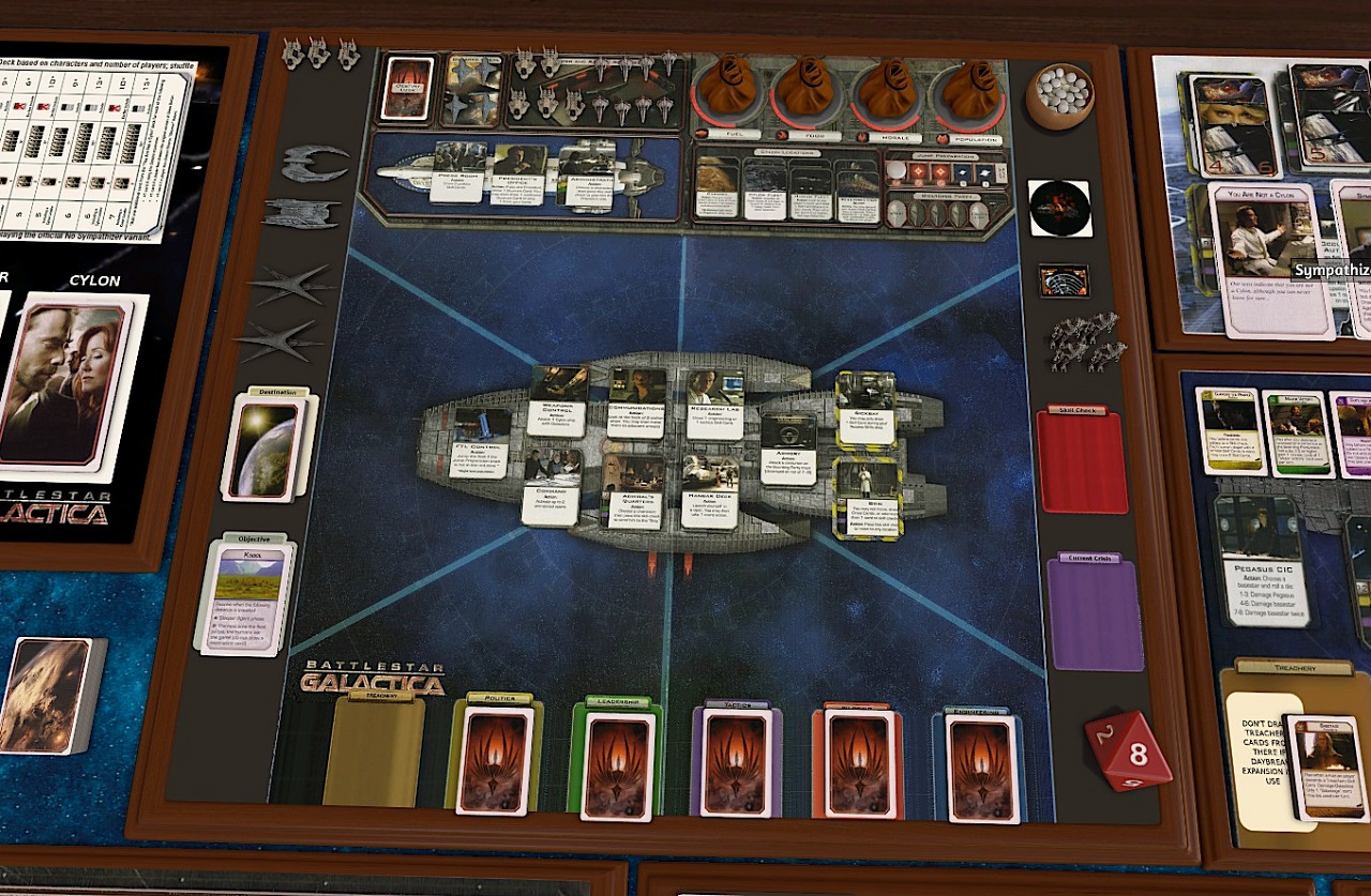 While initially the Fleet Board is initially dealt with using random Crisis cards, I cannot recommend highly enough the Exodus expansion which replaces that system with a special Cylon fleet board. The Cylon fleet board means that rather than jumping away from the Cylons essentially destroying them instead they move back to a mustering area, building up strength and returning again and again. This means that the Cylon fleet must be continuously engaged to prevent its numbers from becoming truly overwhelming. It brings home the idea of the Fleet Board as the ultimate Crisis.