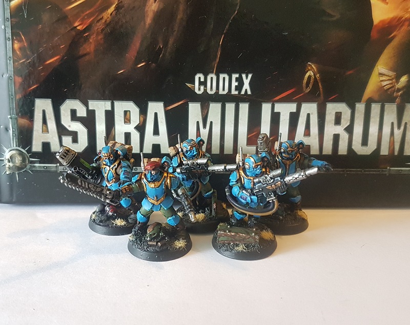 - Reliance on Comms operatives – if you want to give orders to Guardsman they either need to stick close to the leader or a comms operative needs to shadow them. This means that someone shooting them and messing up your ability to relay orders is a risk. Clustering your models together with their low saves is just asking for blast weapons to hit multiple models at a time.