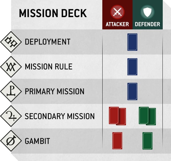 Swiftblade: The new mission structure looks like it’ll combine the good parts of the current matched play structure with the Tempest of War mission format, with a few mix ups tossed in for good measure.The new mission structure will focus around Chapter Approved Mission Decks. Like Tempest of War, you’ll use these decks to determine the deployment and objective layout, primary mission rules for scoring, and mission rules that add special rules to the mission. From there, there’s an attacker and defender deck for secondary missions, and gambits (more on that later!).