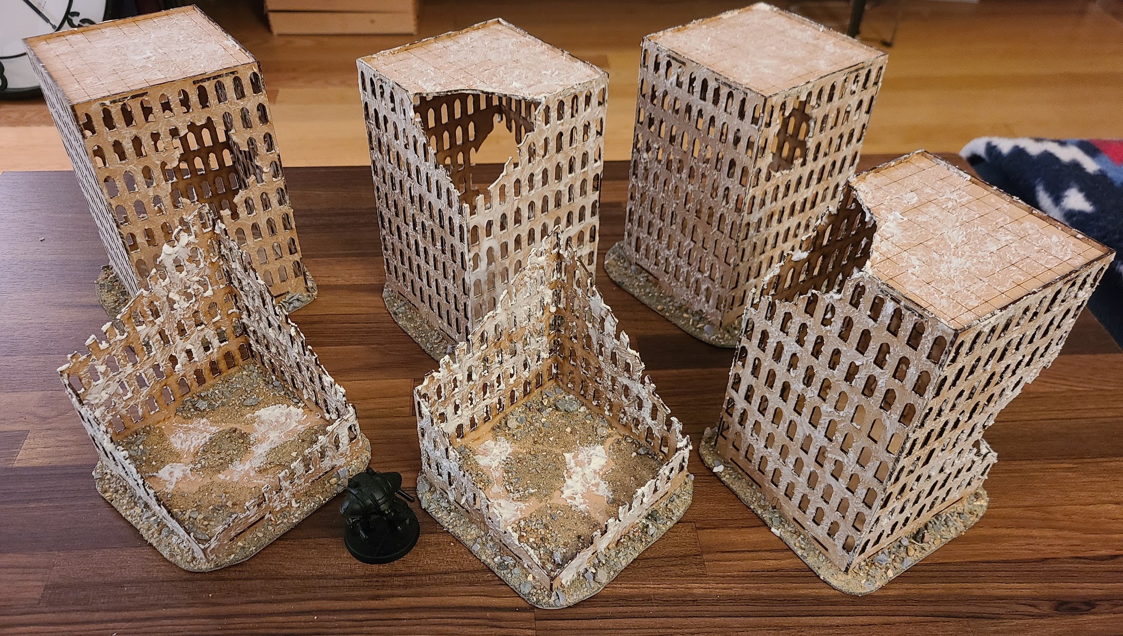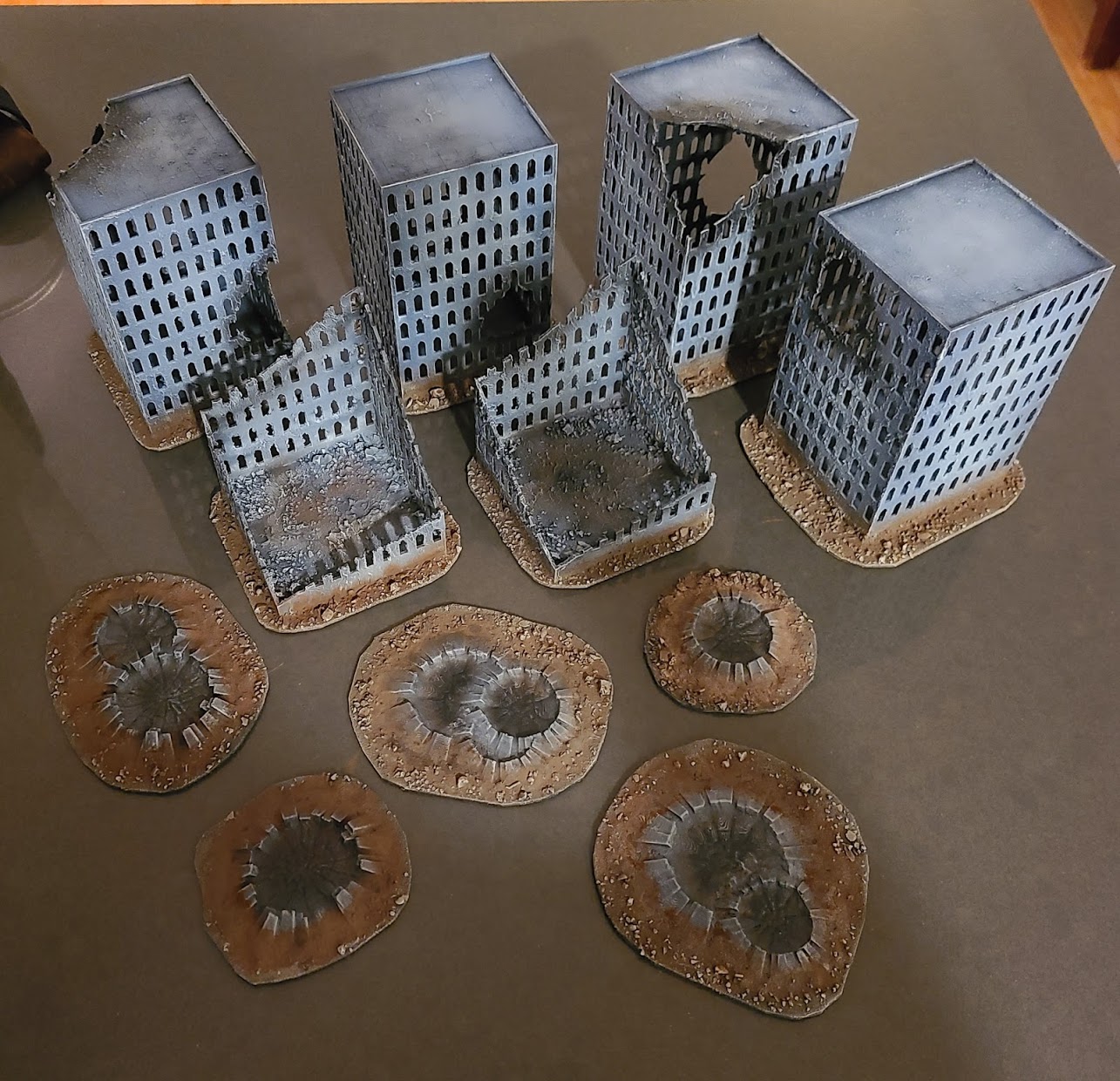 MDF Buildings painted by Crab-stuffed MushroomsFor details on the craters, please see our previous article on scatter terrain.