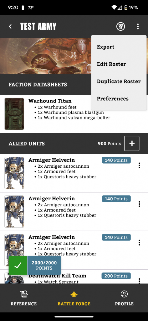 Importing from Battlescribe