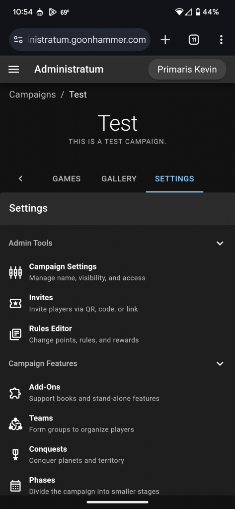 While Administratum is a helpful tool for tracking your Crusade roster, we've built a ton of features around managing and running campaigns, helping players coordinate and track games, manage rewards, and share results.