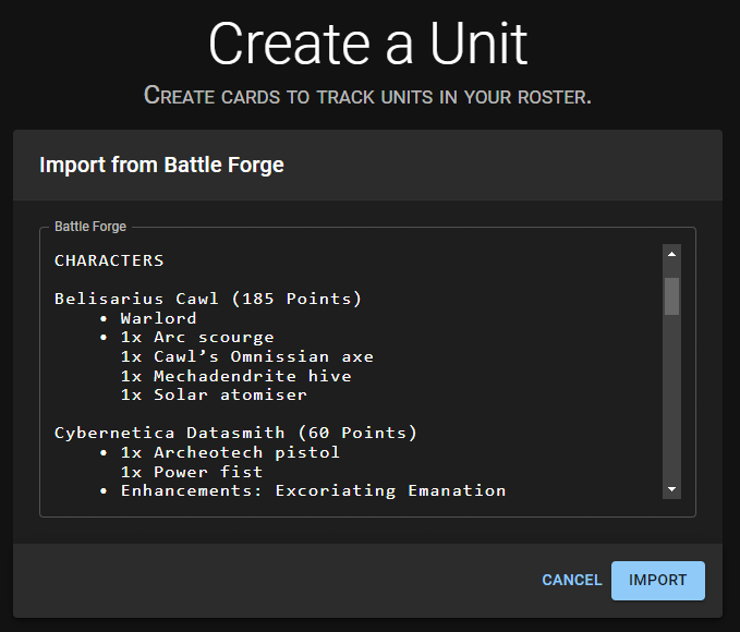 - Unit Create Page - Battle Forge - Import your army directly from Games Workshop's new Warhammer 40,000 app