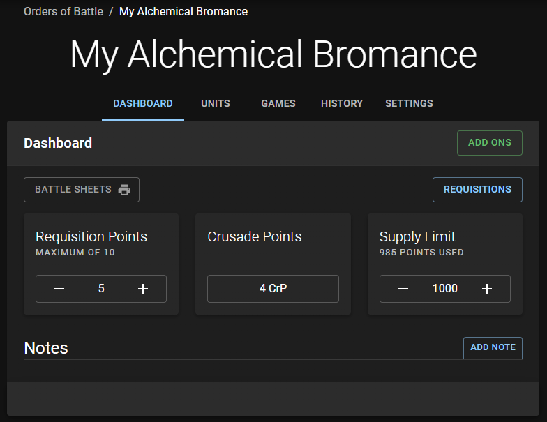 - Roster View Page - Dashboard Tab - Crusade Points Widget - This widget has a new UI and uses the new Administratum data format