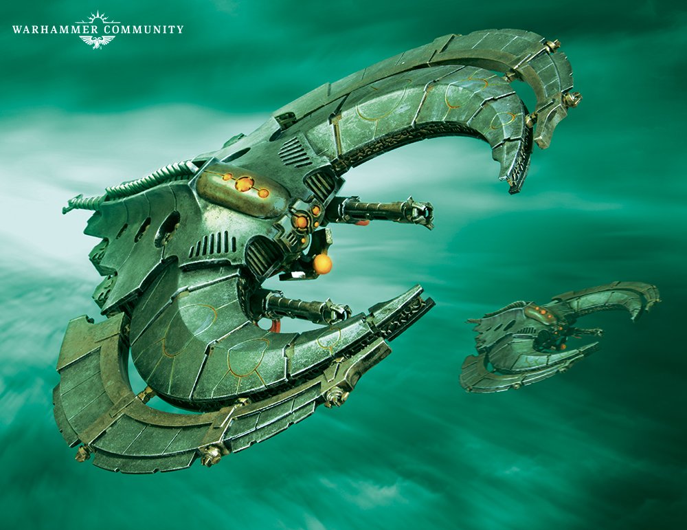 Necrons get two aircraft in this supplement (both available from Forgeworld) and in case you were worried Eldar or Imperial Navy had the most brutal fighters, you’ve got a new combat monster here with the Doom Scythe. It matches the Eldar Nightshade for speed and maneuverability, but has significantly better firepower and twice the structure. However it does clock in at 38 points.
