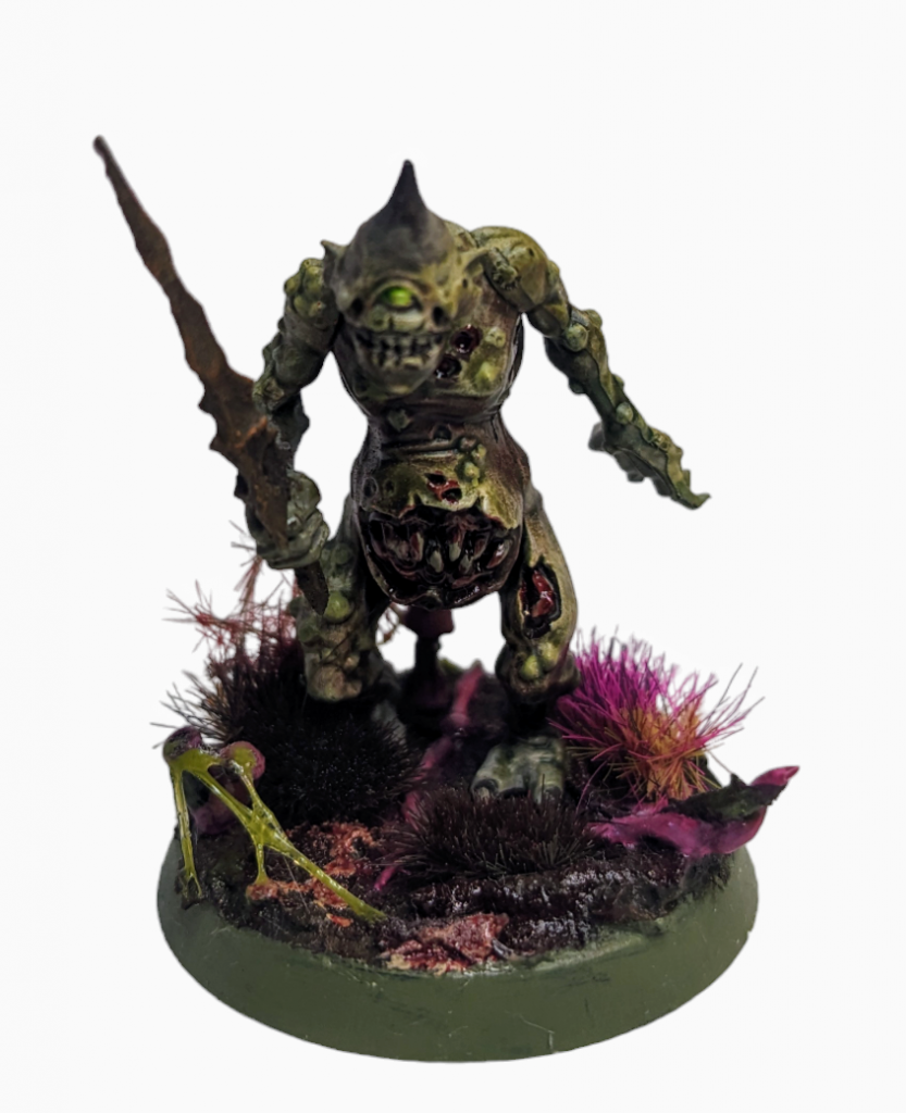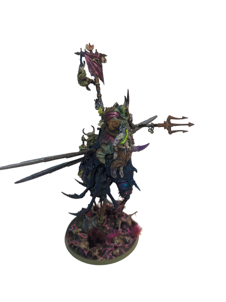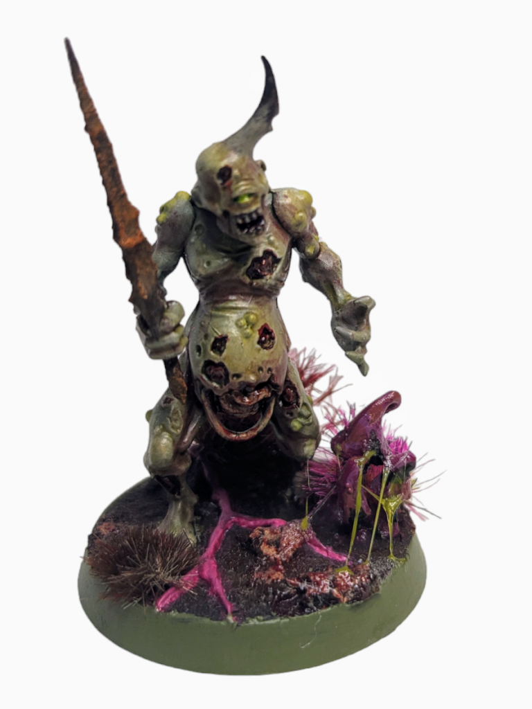 This is the only hero in the box (sort of) and it exists to buff the Plaguebearers. It’s such a great model, and contrasts nicely from the jolly nature of the Plaguebearers with its cantankerous attitude. It has that look of feeling drained following a persistent dripping cold that just won’t go away.