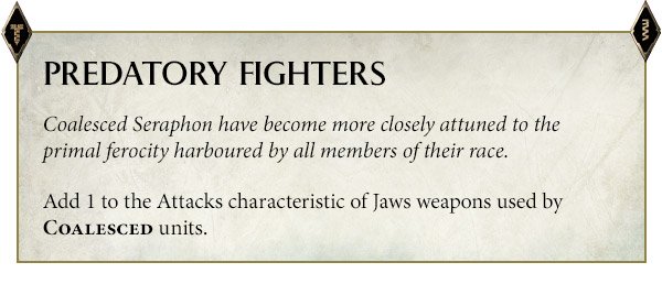 They lost swooping dive, and the beaks now always attack 3 times each instead of 1 buffed to 3 with toad - said toad is a once per game buff to reroll hits on just the beak. They’re now cheaper but the change is a net negative and results in a unit far less punchy than it used to be. All of this is compounded by the huge change to their old battalion, which is now split into two separate battalions which are each nerfed. The big change though is that they’re no longer able to deep strike outside of 3” of enemy units under any circumstances, making getting into combat out of reserves much harder.