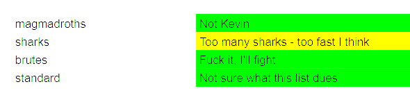 Geomantic PulsePrior to the event we all filled out a spreadsheet with our matchups. We KNEW we were going to grudge this team since our captain had been popping off in various discords and and pickup games prior to the event. So going in we knew we had one of the favorites, a team with various members flying in to support the Georgia Warband club president. My assesment of my matchups were as follows: