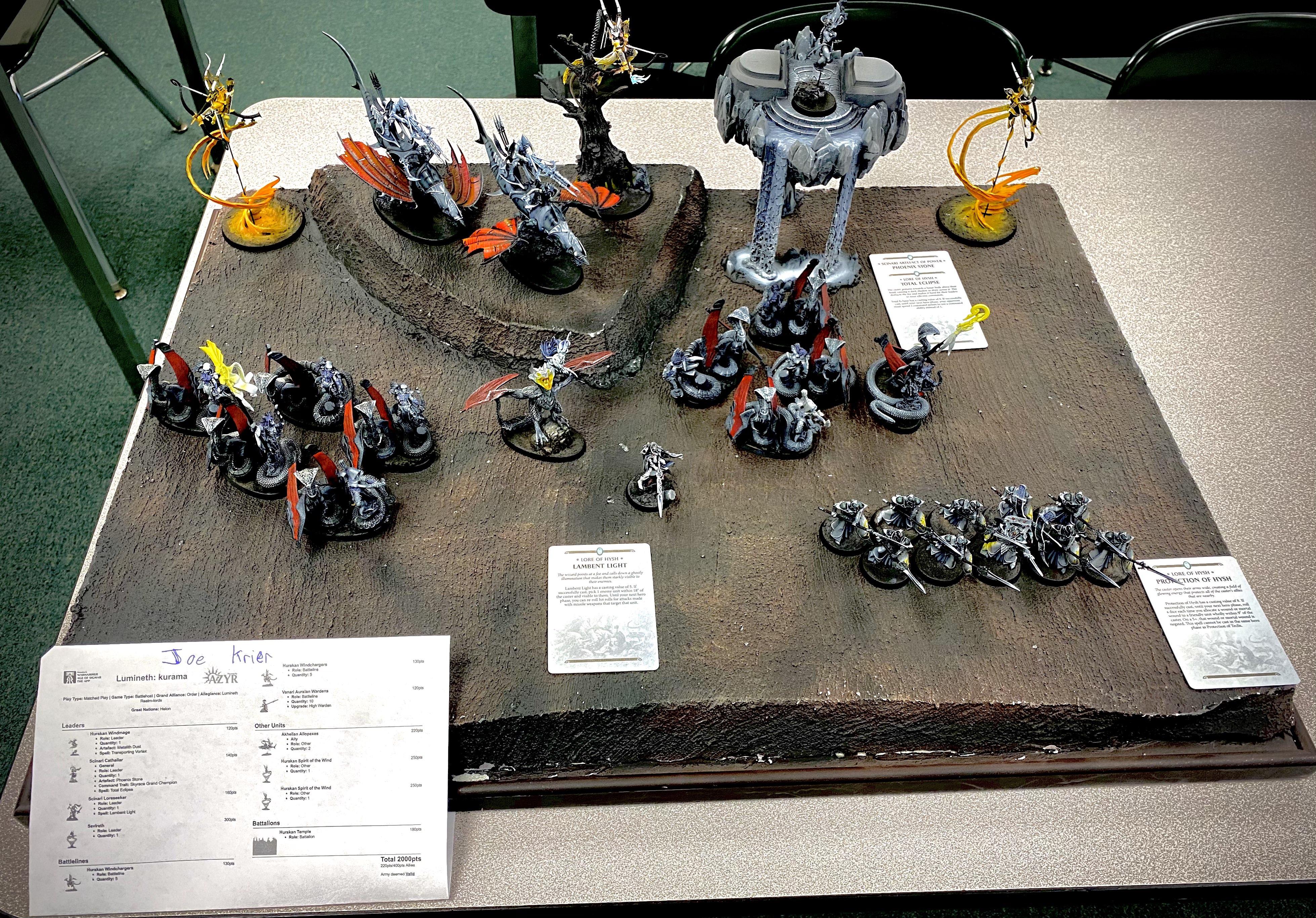 Teclis Celestant prime Knight Azyros Light of Altharion x10 freeguild guard x10 Vanari Wardens x10 Vanari Sentinels X10 Vanari Sentinels X10 Shadowstonkers X1 Gyrocoptor Spellportal. (Remember, we’re in realm of shadow,and he has Teclis.)
