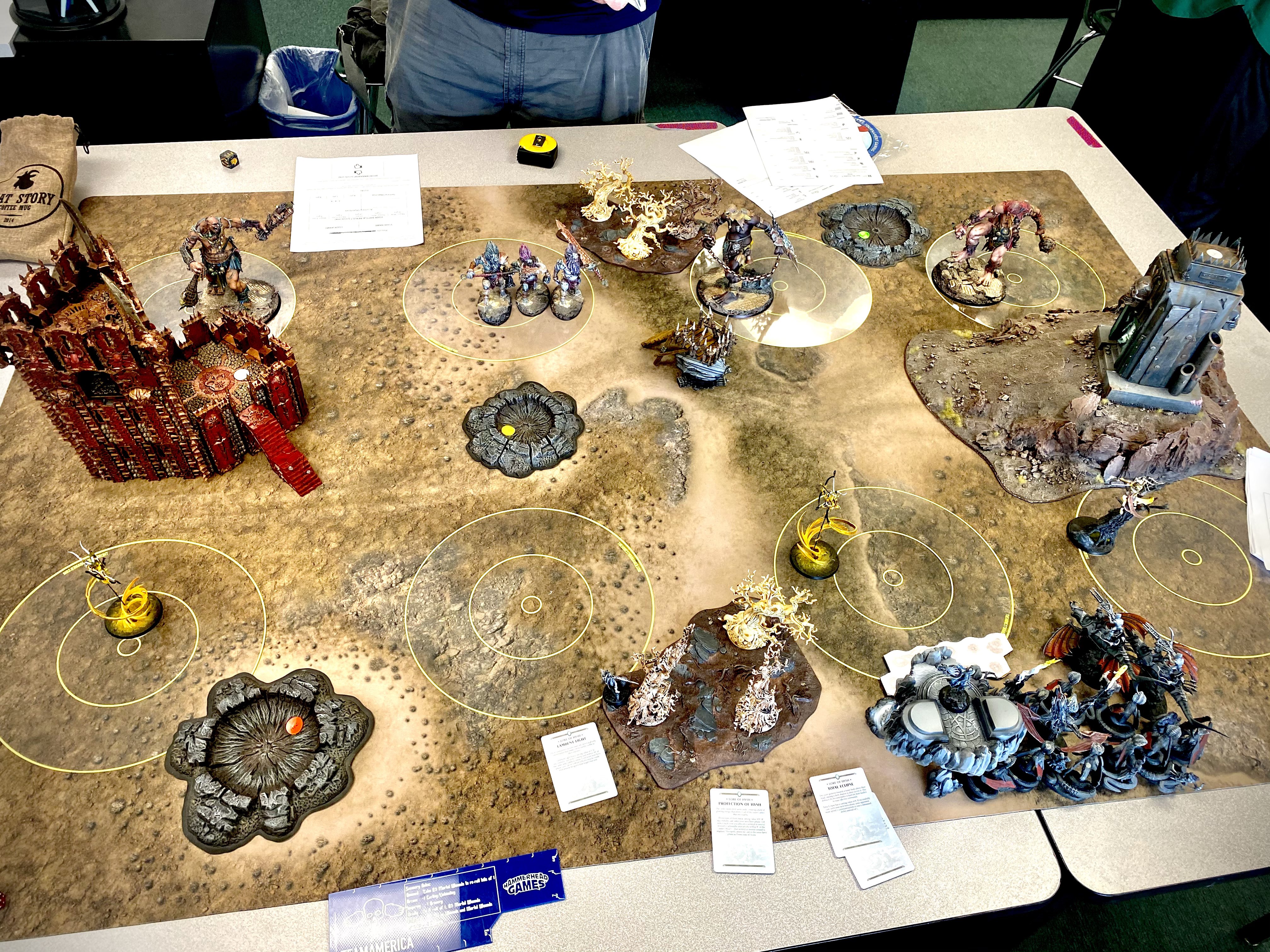 This Battleplan was also a big problem for a list that can only realistically score 4 objectives at once, and against an army who moves away after you move closer. Very rough matchup for The Sons of Behemat. Though luckily the player was also a good dude. Emotions got a little spicy at least once because my army just does not interact with his and that got understandably frustrating but we talked about it and things cooled off. I would have no qualms hanging with him outside the event. Great guy all around.