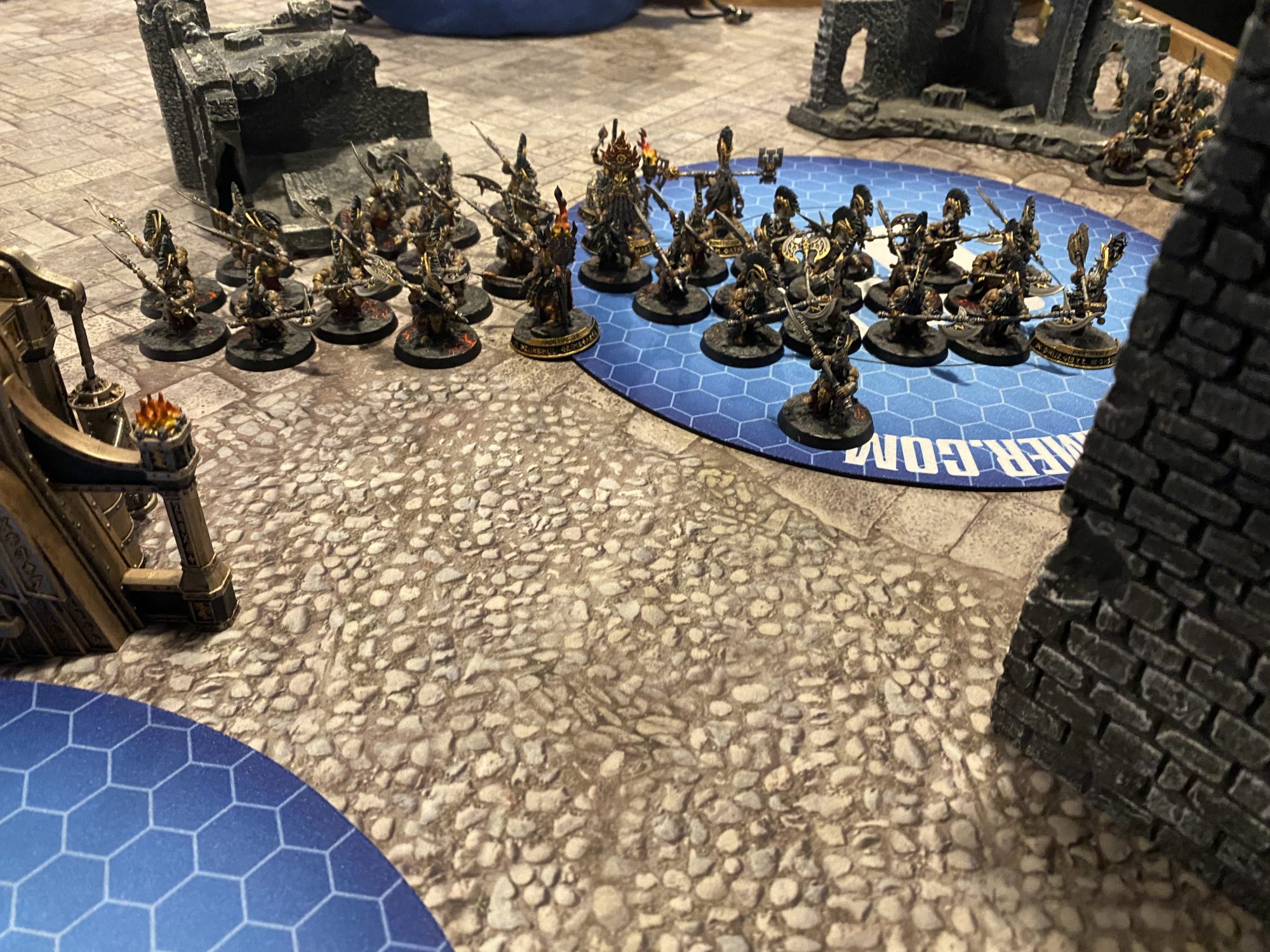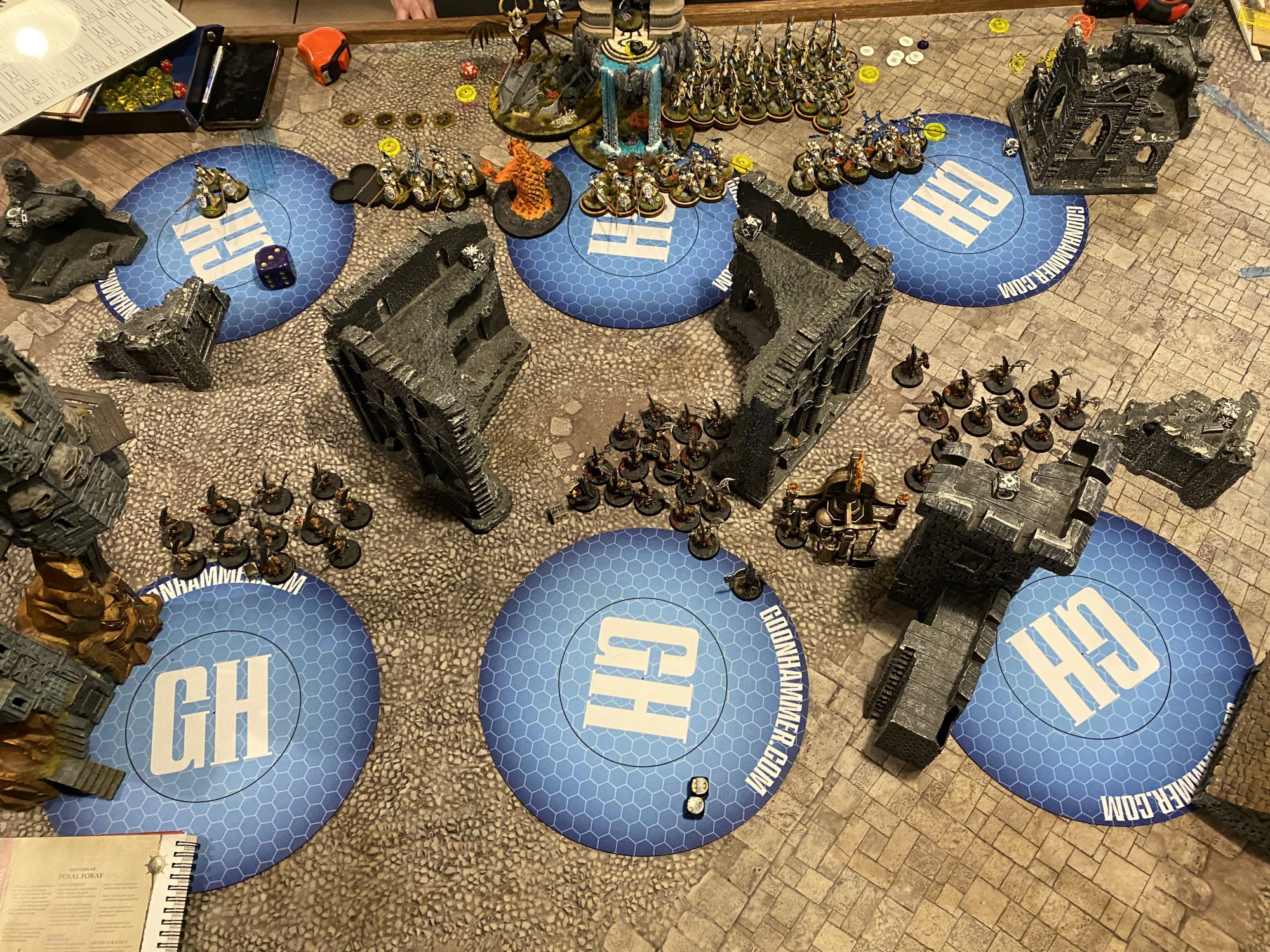 This was going to be an uphill battle from the start, a 6 objective battleplan. This is difficult for my army to score against an opponent with a lot of shooting, can shut down my orders, and causes massive debuffs to my Bravery. Stacking Bravery debuffs onto Hearthguard means that having a 4+ ward means very little when half a dozen or more run after losing just 1 model.