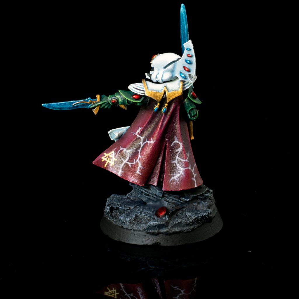 Ready to cast some runes and smite some mon'keigh!In a prolonged period of madness, I acquired many many metal Eldar models in 2017 and it is very gratifying to actually make use of one. In this case, the Farseer sculpt is a fantastic one and easily holds up alongside the newer plastic Farseer. I really enjoyed painting him and he will be a useful addition when I can' spare the point for a Farseer on bike.