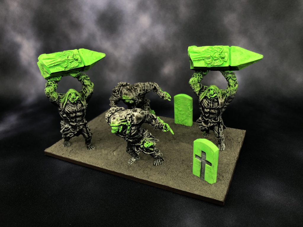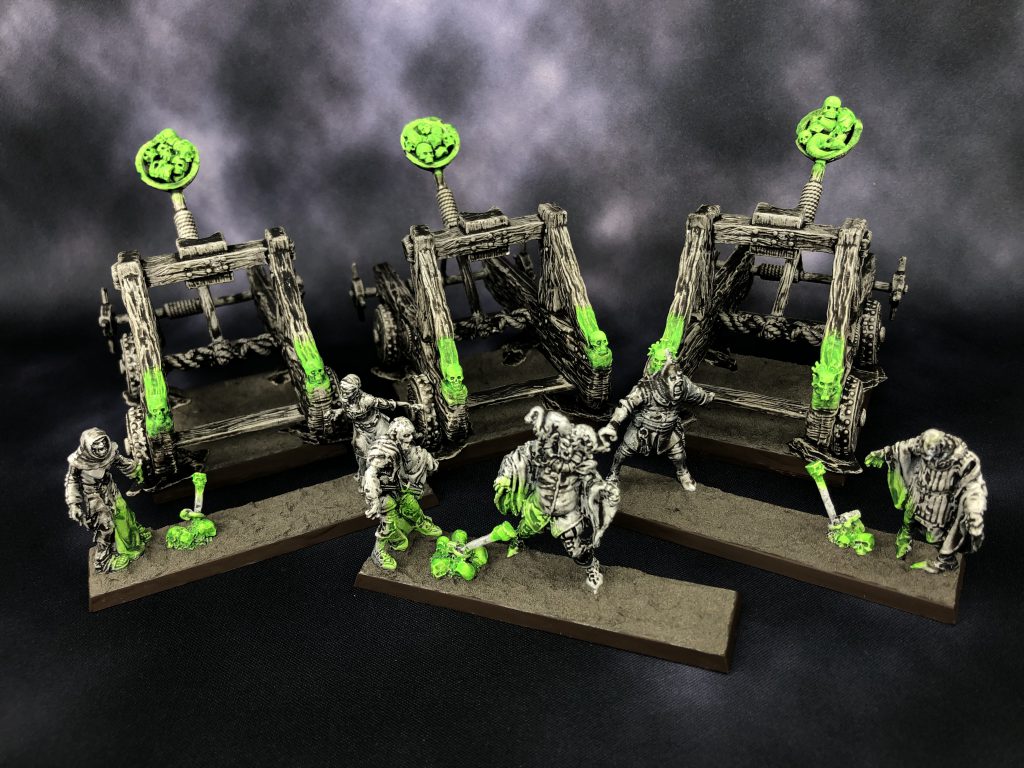 Cheap and tough Zombie Trolls, they can do some work. Credit: Keith Maki Lee.With the Goreblight dishing out damage via Cloak of Death, the Dread aura from Mhorgoth, and Drain Life, I often start a combat with the enemy unit already down by several damage (not to mention whatever damage the Balefire Catapults have done as well), allowing the otherwise unremarkable damage output from Zombie Trolls and Wraiths to rout enemy units. Drain Life also means that my already tanky units stick around a lot longer when combined with Lifeleech.