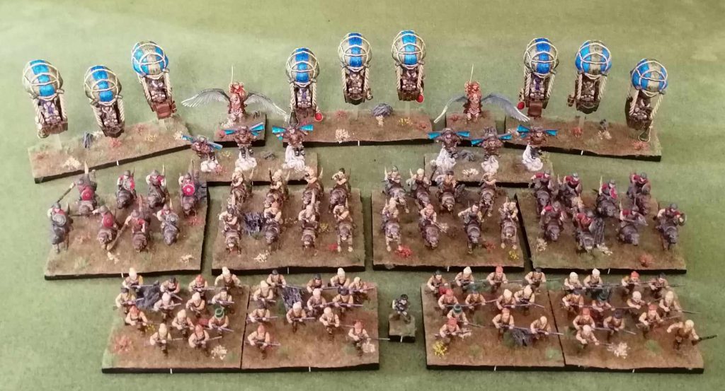 Piotr: I have several Kings of War armies. The first one is Elves, which I adopted the High Elves from Warhammer for. The second one is the Goblin army, which I also partially adapted from the Warhammer game and supplemented with original models from Mantic, which I missed and liked (Slasher, Wingit, Goblin Blaster). The third army is the Halflings.
