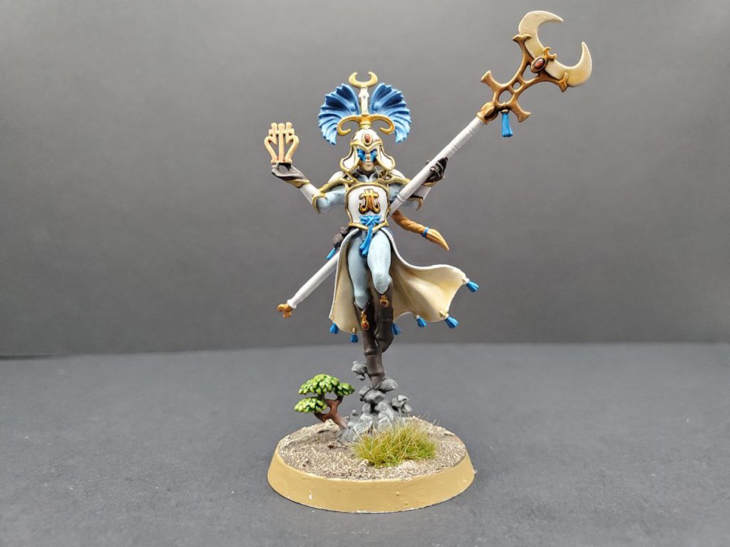 The new aelf hero in the box is a 2 cast 2 deny wizard that once per game is able to cast a spell on an unmodifiable 9 automatically (that can still be unbound normally). A great extra power to be able to near-guarantee a spell that you absolutely need to get off, at least if the enemy lacks a bonus to unbinds. Additionally once each turn when they successfully casts a spell (from Lore of Hysh) and is not unbound you can roll a D6 and on a 3+ you can proc that spell a second time. The problem is right now is that its usefulness is a bit questionable. There aren't many spells you need to cast twice an it's competing with a few other heroes.A unique spell lets you choose an enemy within 12" and for each wound this model suffers that chosen unit also suffers a wound. This sounds great but on a 5 wound hero with a 5+ save if it's being attacked at all its likely to die immediately and deal 5 wounds back at most; niche but potentially useful at the right time.
