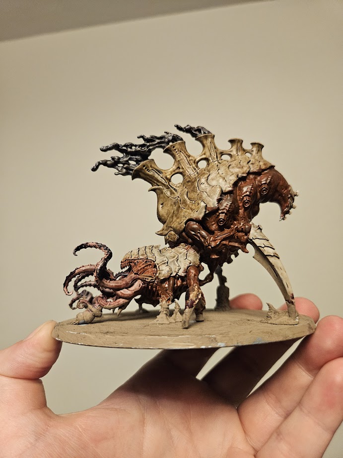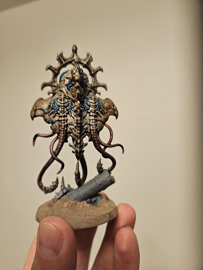 Neurothrope Credit: Chase GarberNext, I had my brand-new HQ addition to my list, the Nerotyrant, and with that, my love of Goddess Glow really came through. The speed paint does an amazing job with its color and simplicity, and I didn't feel any need to use a wash over the paint I was already using. Again, I used the Bony Matter paint, and then I moved into using the Raging Sea paint for the brain matter. For the pipeing that is on the base, I used the Ashen Stone paint which again, was amazing with its coverage.