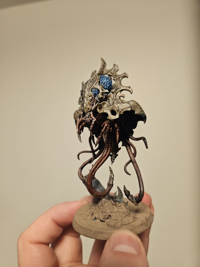 Psychophage. Credit: Chase GarberBefore the summer ended, I had the pleasure of winning a GT in Duluth, MN, and that was done partially due to these brand-new models I had gotten painted up. I was only able to get those done thanks to the beauty of the speed paints here. My Psychophage is painted with about four or five primary colors, starting with the Bony Matter paint. The flesh of the tentacles was done with the Goddess Glow paint, which honestly was something I was kind of gambling with and experimenting with, but I was incredibly happy with how that turned out.