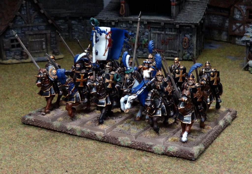 I don’t work on the army all the time, just when the urge takes, but my love of the faction remains undimmed. Everything from their heraldry to their lore and play style is just as satisfying to me now as it ever was. This army contains some of my most ambitious conversions, and my most complex freehand painting efforts… largely in the hopes that sexy banners will draw the eye away from the rudimentary paint job the troops get.