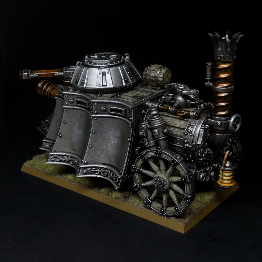 Warlock's Bane, Empire Steam Tank. Credit: Charlie BrassleyVarnished Wood Follow the steps above, then apply a glaze of chestnut ink. Note, this does need to have the intensity and gloss of ink, but any red-brown ink should do. Sorry to use such a niche paint, but this is what works for me.