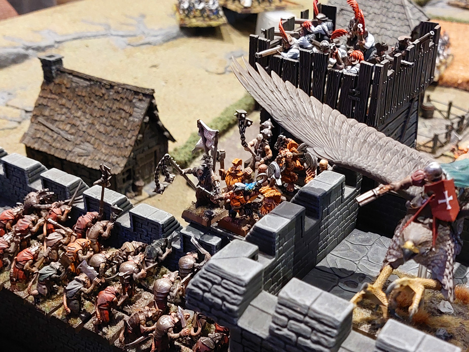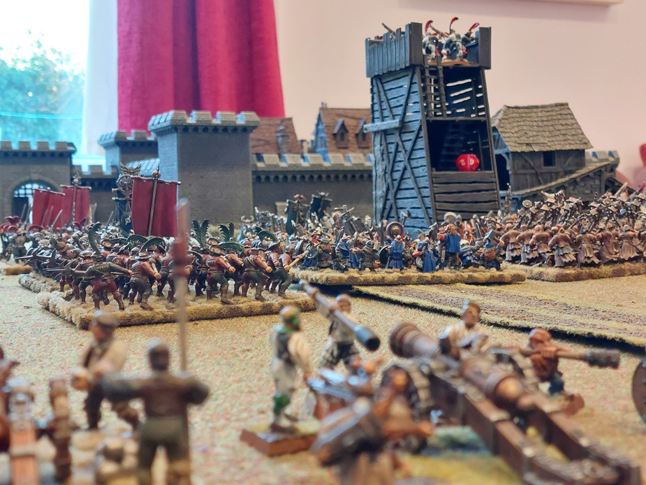 Soldiers of Hochland and Ostland, with their Dwarfen allies, assault the Skaven-held city of Hergig. Credit: Charlie Brassley
