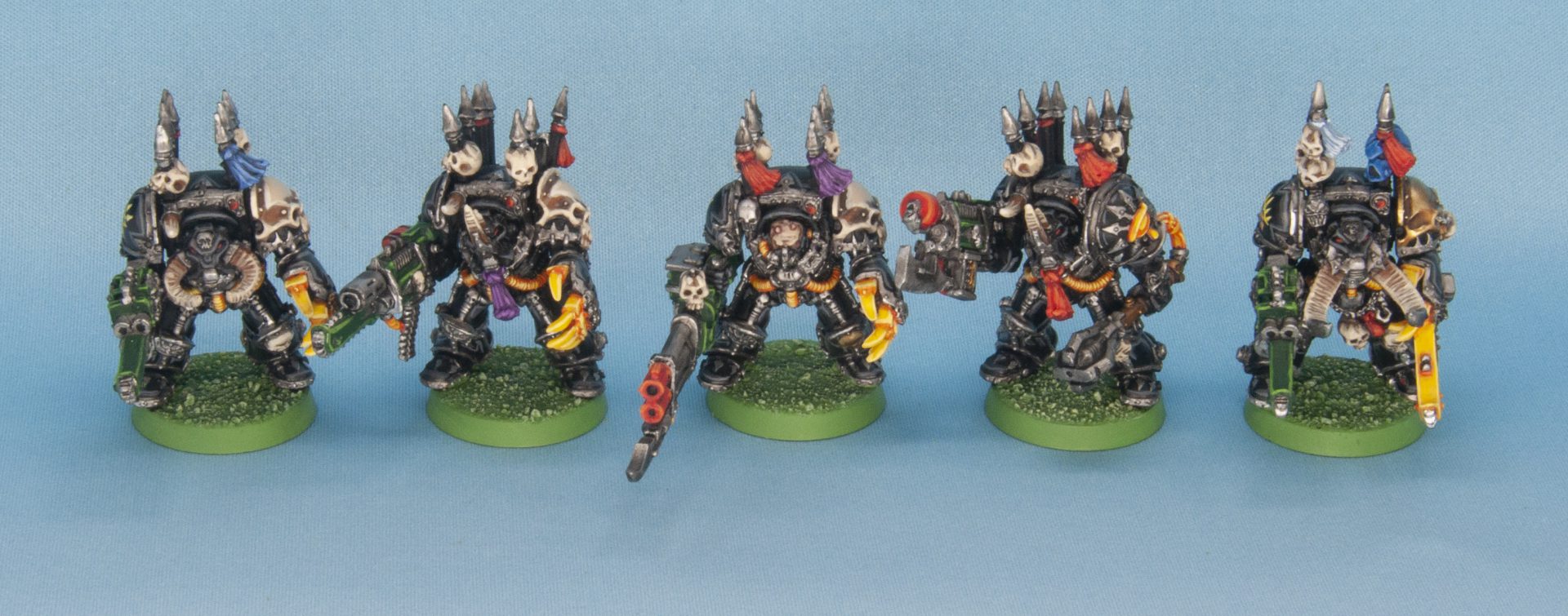 Credit: Dylan GouldOne of the most challenging parts of building the metal chaos terminators is that they came with a random/irregular assortment of arms and bits - this was easier to see if you were buying one in a single model blister but the 5-model squad box came with a semi-random assortment of melee weapons and didn't have the champion model!