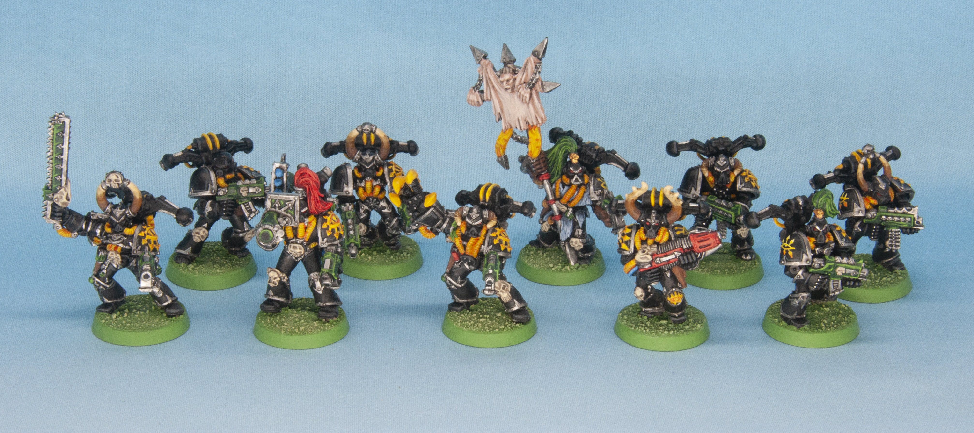 For these I matched the paint schemes in the How to Paint Citadel Miniatures book. Famed for the 4-step paint process, these were fun, though the Thousand Sons were a challenge - with so many colors next to each other, they took several hours each to paint up.