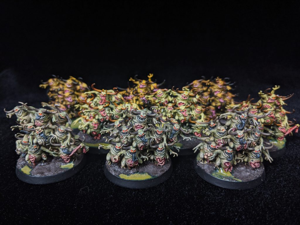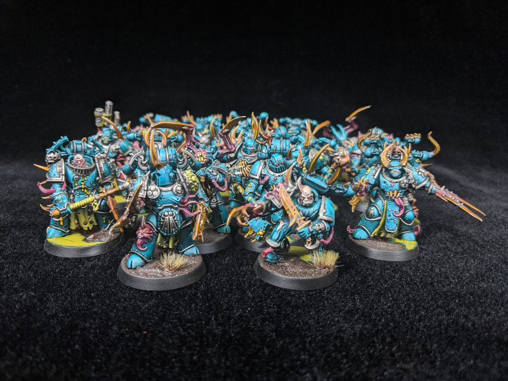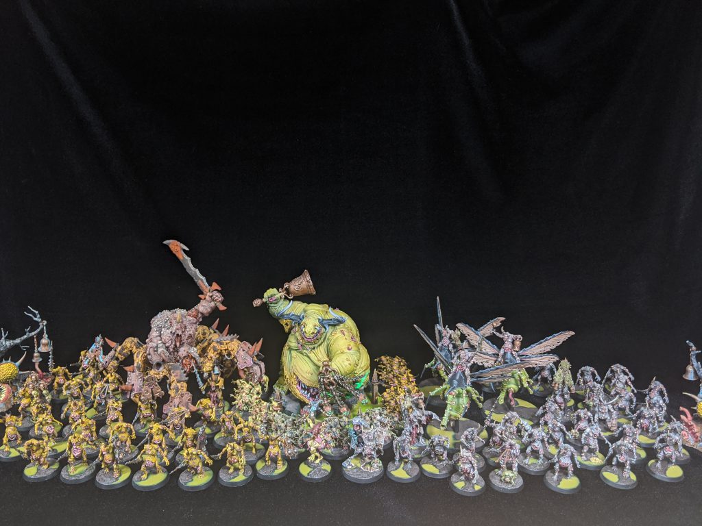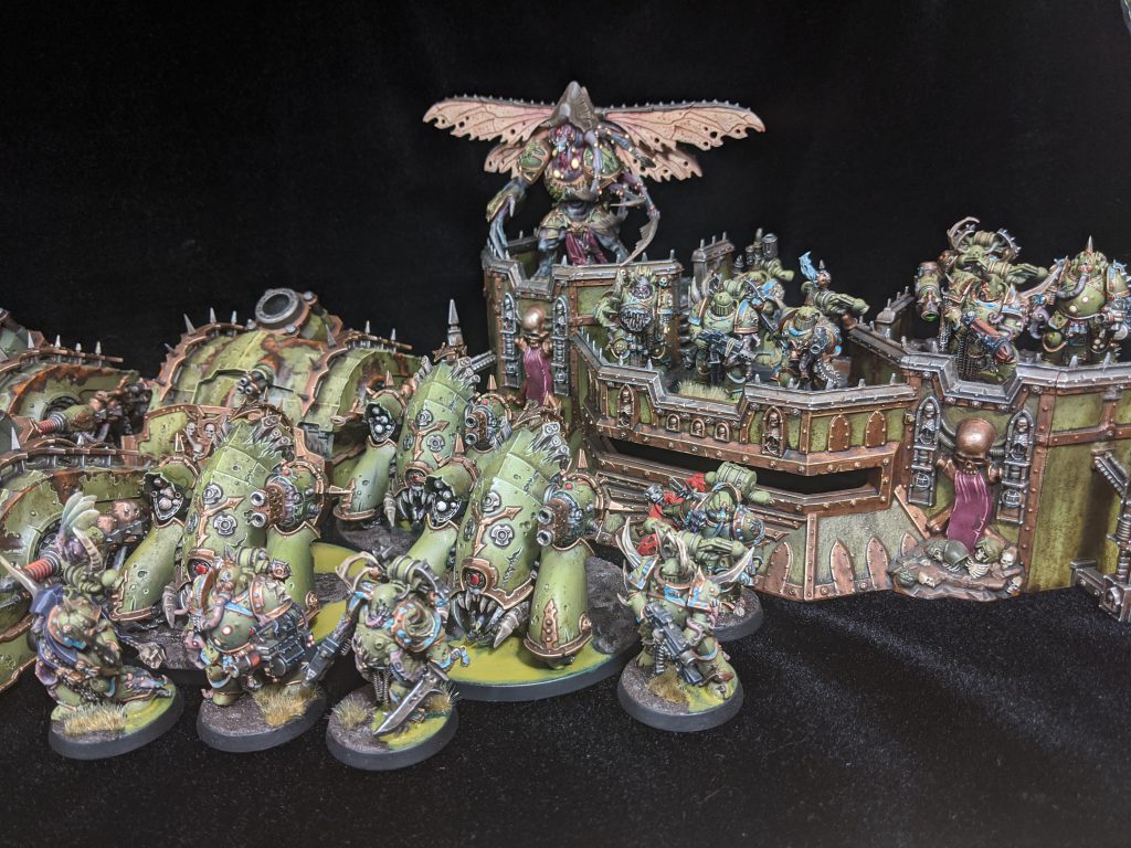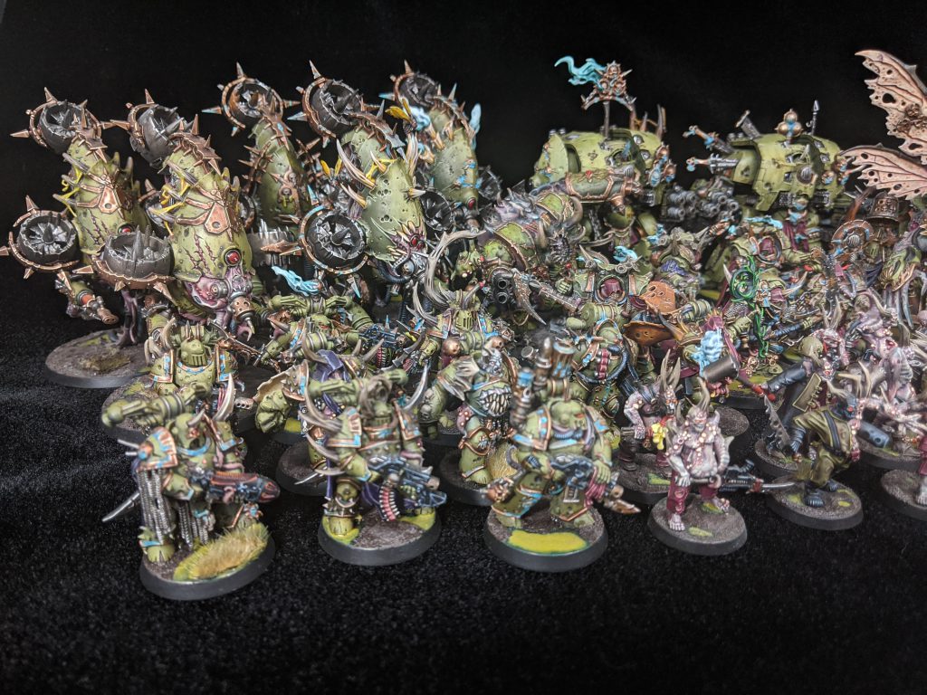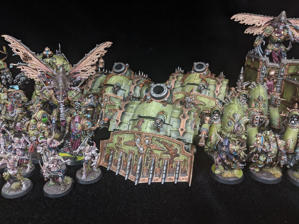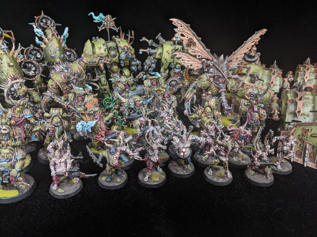 That’s when my army became something else entirely. “Forces of Nurgle” is a much more apt description of what my army looks like today. I have a respectable Daemon of Nurgle Army that was always intended as a supplement to my Death Guard. I started chasing all sorts of different avenues. I purchased some Forge World and heavily modified them for Nurgle compatibility. I have mark of Nurgle Alpha Legion models, all custom kit-bashing work, I also have added the odd Tzeentch supreme command when that was viable. I’ve never really chased any Meta while playing this army, although, if a rules change made something viable or interesting, I would buy it and play it. Now I’m playing competitively for Northern Front and loving every maggot squelching minute of it. I’ve moved away from painting purely for skill and have pivoted to painting for completion. I want my army to look good, But that ever looming tournament has helped me to focus on finishing models and improving as a player.