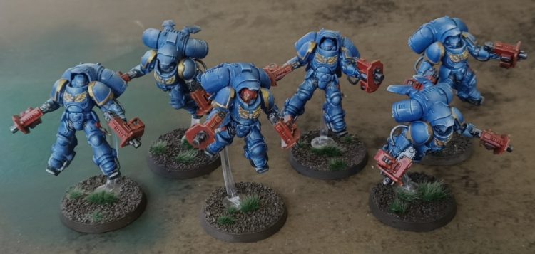 Photo Credit: MusterkruxYou can tell I painted the Gravis Captain and Primaris Ancient at a different time to the rest of the Intercessors here as their 'blue' is much darker than the others (Also, I think I hand painted them instead of airbrushing the base colours on). The OSL from the Captain's sword is a little subtle but it can be hard to communicate OSL without hamming it up. As is often the case with my painting, what looks good at 6" away (while I'm painting the model) does not always translate well to the table (the infamous 3-foot rule). My concession to the 'Reinforcements have arrived' narrative is that I pay the CP to have these fellows walk onto the table mid-match. I don't love it but there aren't many Primaris options that get to Deep Strike natively and I'm already taking as many as I can (see below).