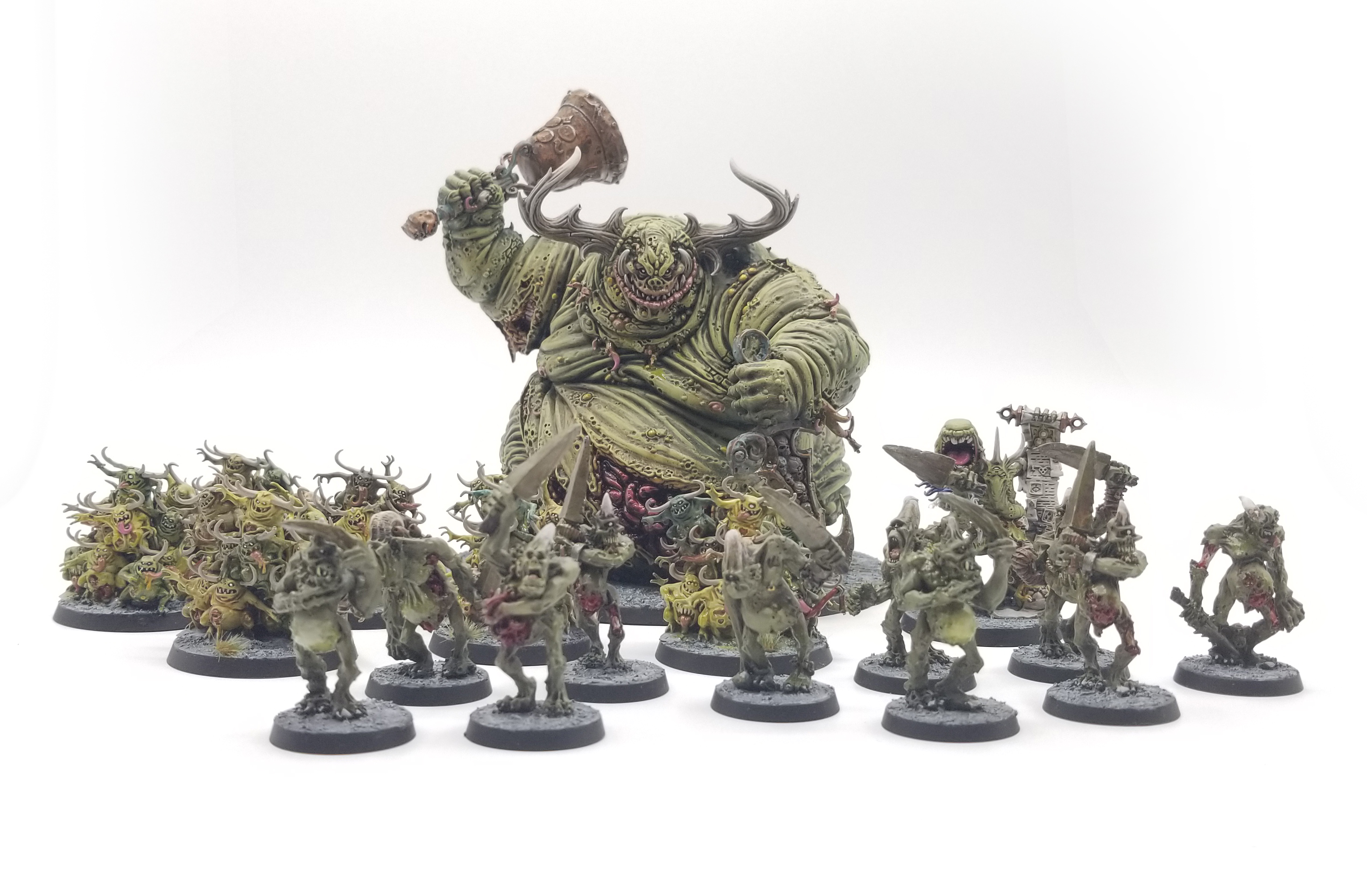 Credit: Robert "TheChirurgeon" JonesAnd finally, I spent a great deal of time adding some daemons to the mix as well to support my Death Guard. I knew even before 9th edition that I wanted to have a detachment of daemons so I could run a Great Unclean One with a plague bell to bring them back to life. Also I wanted some Nurglings to camp on objectives early on and be irritating. Then the transition to 9th happened and these became really viable strategies. Note that through about a dozen games, I have yet to return a Blight-Hauler to life with the GUO even once. Also I have to re-base all of those Plaguebearers, a thing that I really, really don't want to do.