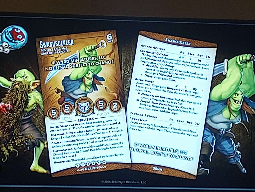 i'm more interested in Castaway there on the left, and will be disappointed if he's not named Wilson. Credit: Wyrd GamesNow we're talking. This is the first Minion we've seen so far, but not the last (and that Castaway-looking fellow on the left suggests to me that Angler/Infamous is getting more than one new card). I play both of these keywords a lot, and folks... it may surprise you but I really like Swashbucklers.