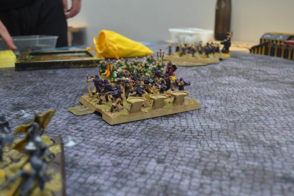 George pulled back, biding his time, and banking on the Vets breaking through and becoming a thorn I would need to deal with whilst he would either over take on points or hammer me from the other side. But the hefty damage from the Skyreach Bowmen put the Vanguard in a position where they did not want to push their luck, Jon did not see a way to cut through the Royal Guard, and the Sand Skirmishers shut down the Vets. Eventually the Skyreach Bowmen ended the Vanguard leaving Jon’s Ranger Hunters left. If George was one dice more fortunate with Othell or the Veterans, then the Retinue would be dead and I would have a serious problem in my rear whilst staring down another in the front. It was just enough of a delay that squeaked me an advantage. We are now a game each from events so we will have to settle the score at the next one!