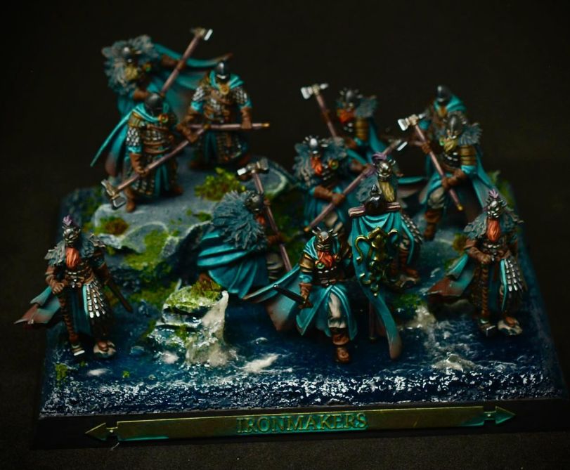 In total, it took me about 10 weeks. 122 Minis. That's 1.7 minis per day... Quite ok for the fact that I didn't choose the easiest way with the scenic bases and the water effects. At this point I would also like to thank all supporters. My Wife, my Son, Sigurd, Tobi, Gidti - without you, the army would not be the same.I didn't go into everything so that the article wouldn't be too long. I know. It is long. I didn't talk much about my painting techniques, how I paint skin variety and also not about my tools like paints, brushes, etc Maybe that's something for another article.
