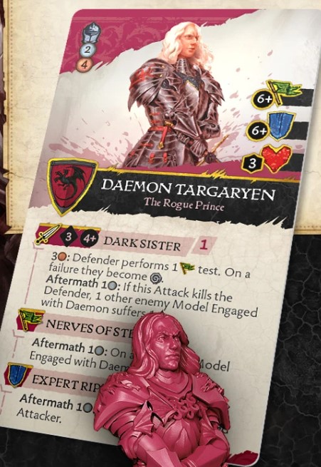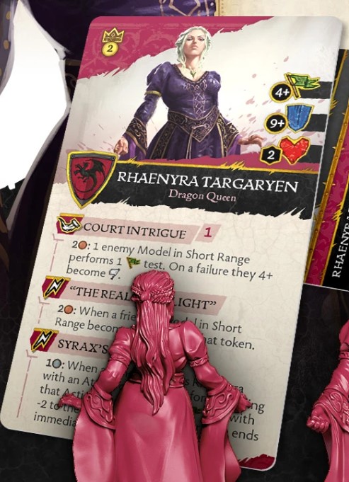 Rules Design - The rules for Rhaenys are looking very powerful and are far more worthwhile for her cost than Corlys. She has one of the worst armour values in the game even though she is in full plate armour at 9+ which is the same as Rhaenyra who is wearing a gown, a little confusing but perhaps this is to show her age or lack of skill in a combat scenario.