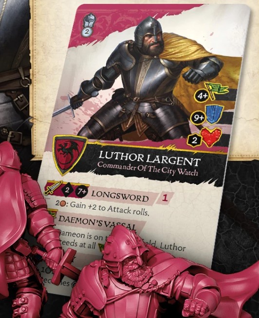 Rules Design - Luthor Largent shows up to dish out some hurt alongside his master Daemon Targaryen, but you will need to spend some coin for Luthor to be truly useful, which to be honest is quite accurate to how Luthor and by extension the Gold Cloaks rose to power. Since Daemon raised the City Watch to a higher standing, they have found their loyalty firmly with the Rogue Prince which is reflected with one of Luthor’s abilities which grants a benefit to Luthor if Daemon is on the field. But we don’t know what this is or the third ability at this stage.