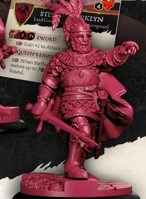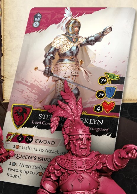 Rules Design - Steffon has some decent combat statistics being the Lord Commander of the Queensguard but the true power comes in the form of the Queen’s Favour rule which allows Steffon to recover 7 Copper. Now this could be huge depending on how valuable Copper is for the abilities of the faction, if you can blow a large amount of Copper and then get a bunch back to blow some more all in a big turn, that could be huge. Copper does come back though, so it is specifically to allow a huge turn of ability popping.